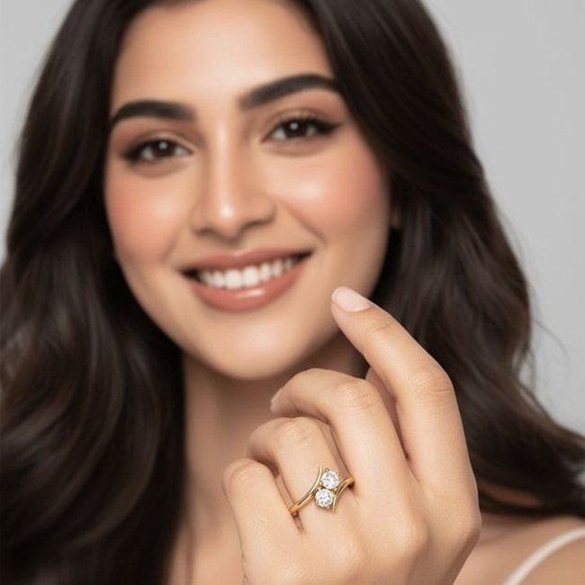 Gracefully fluid and unmistakably modern, this Laboratory-grown Diamond ring is a study in balance—where sculptural gold meets refined brilliance. Designed with a contemporary crossover silhouette, the ring features two round brilliant-cut Laboratory-grown Diamonds, each measuring 4.00 mm, with a combined weight of 0.600 carats. These Laboratory-grown Diamonds are secured in an elegant collet setting, allowing maximum light to enter while maintaining a clean, architectural profile.