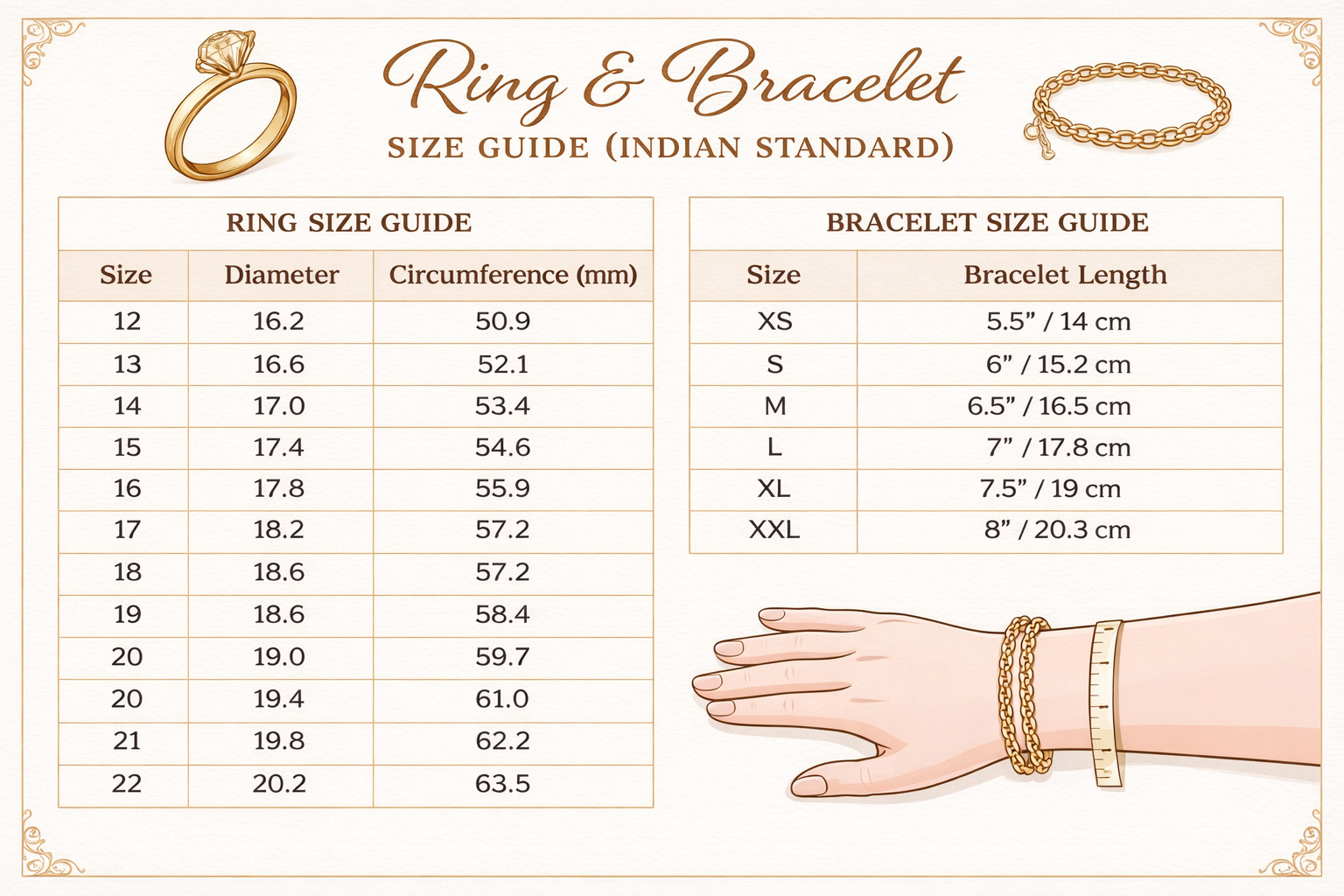 • Product specifications matching the purchased jewellery