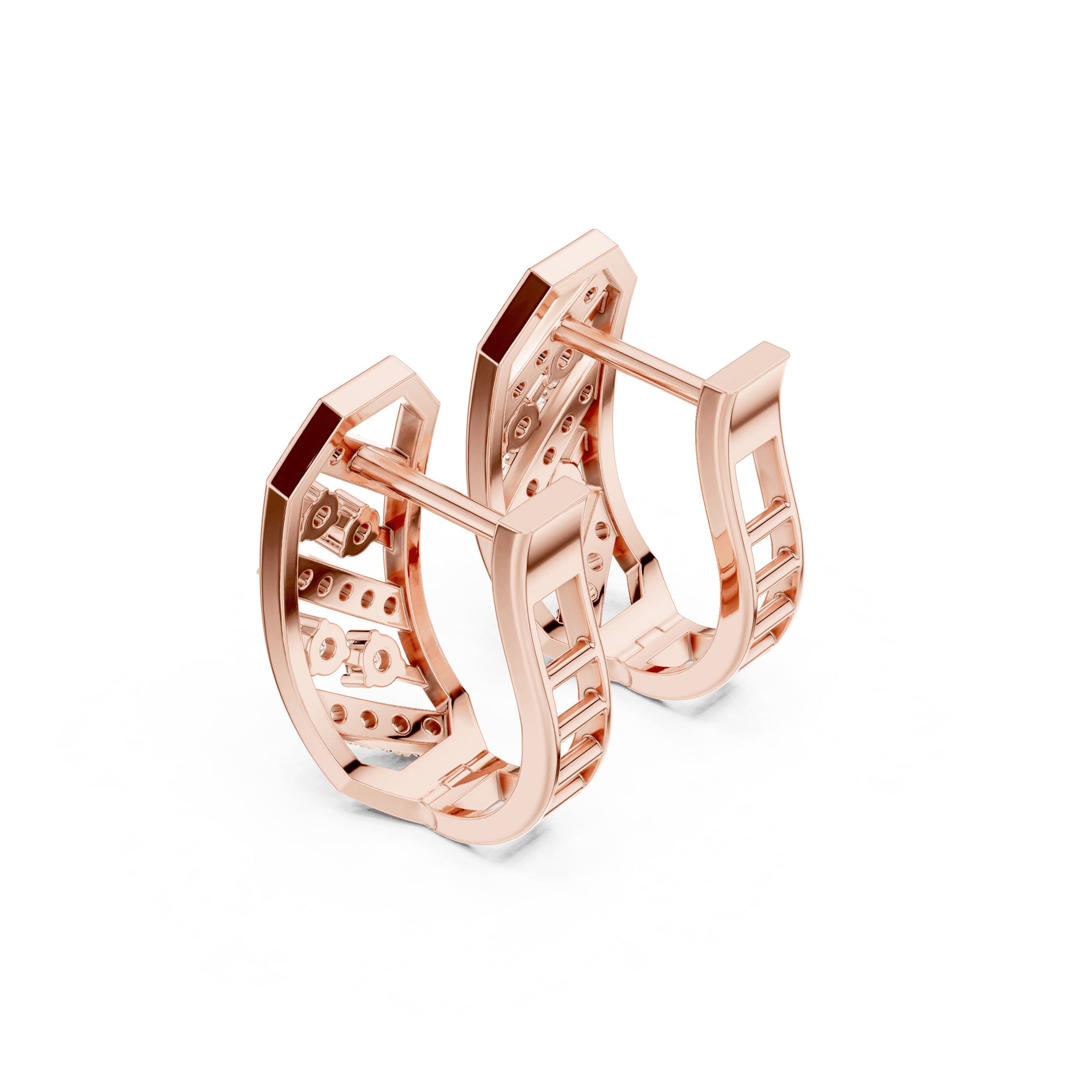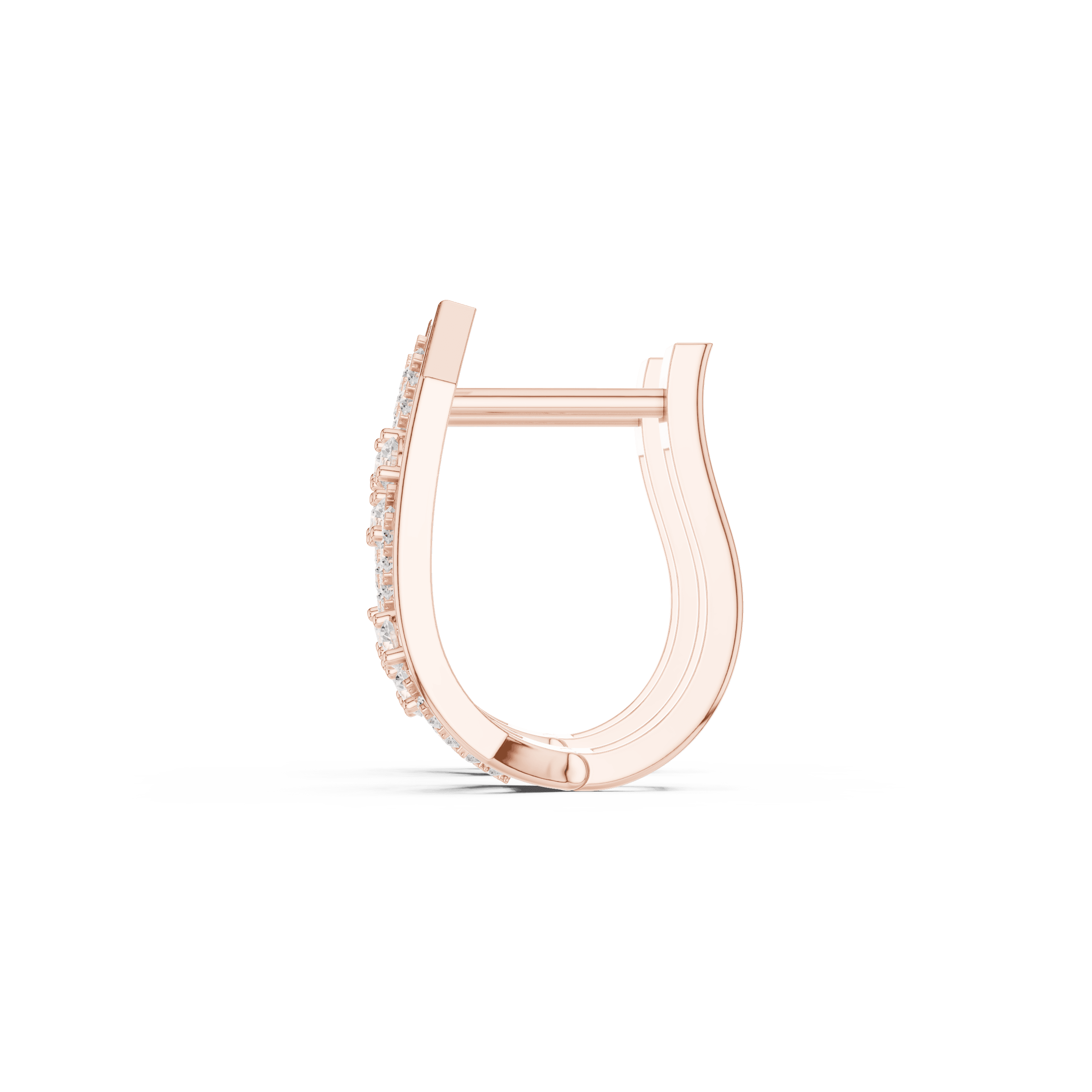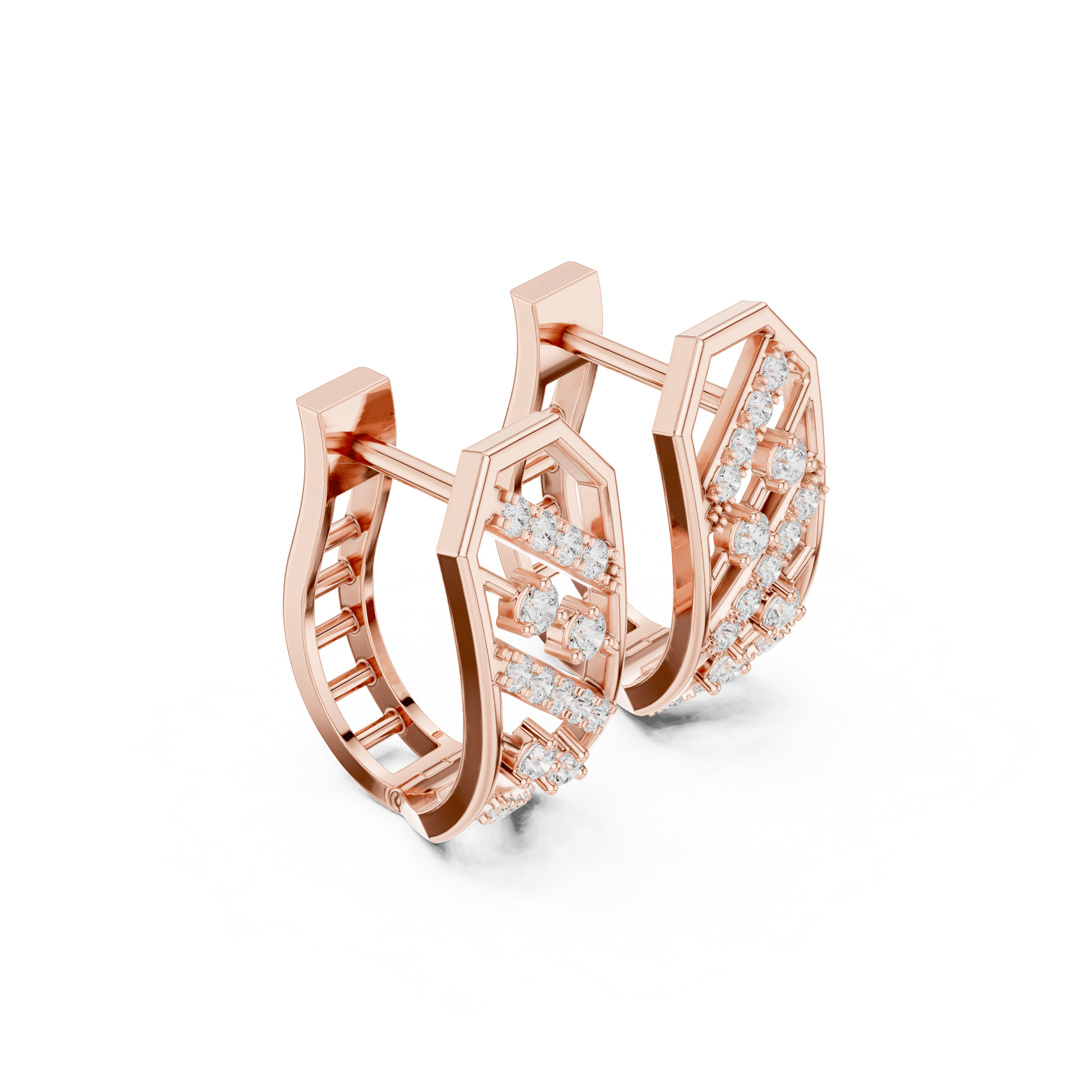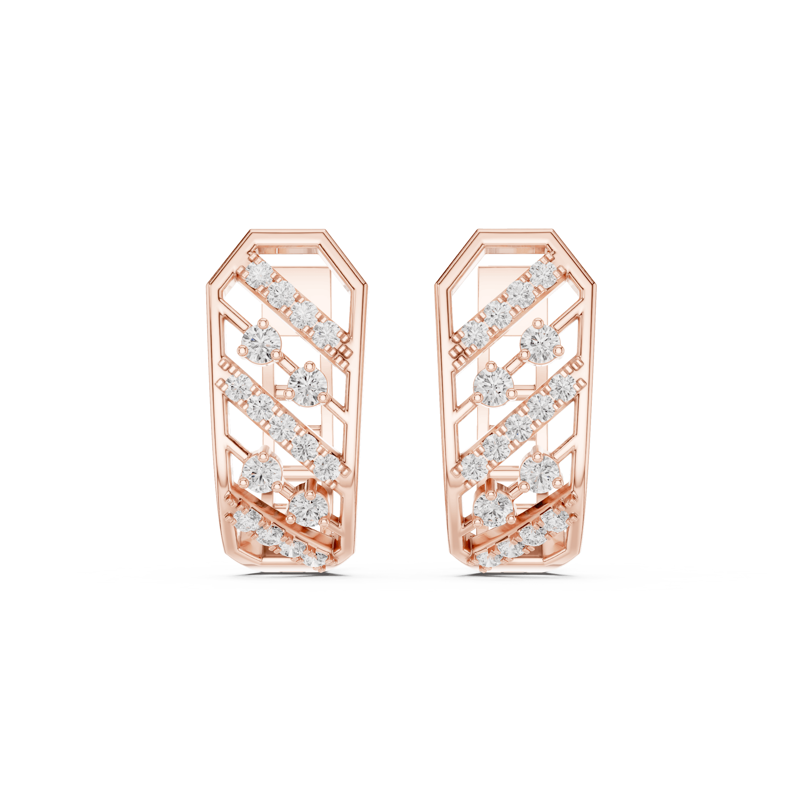 This piece is set exclusively with laboratory-grown diamonds, reflecting conscious luxury without compromising brilliance or precision. Each pair features a total of 34 laboratory-grown round diamonds with a combined weight of 0.352 carats. The composition includes 8 laboratory-grown round diamonds of 1.60 mm size, secured in refined collet settings and contributing 0.144 carats, along with 26 laboratory-grown round diamonds of 1.20 mm size, micro-prong set to create a seamless flow of light, adding 0.208 carats. The interplay of collet and micro-prong settings enhances sparkle while preserving a clean, architectural aesthetic.