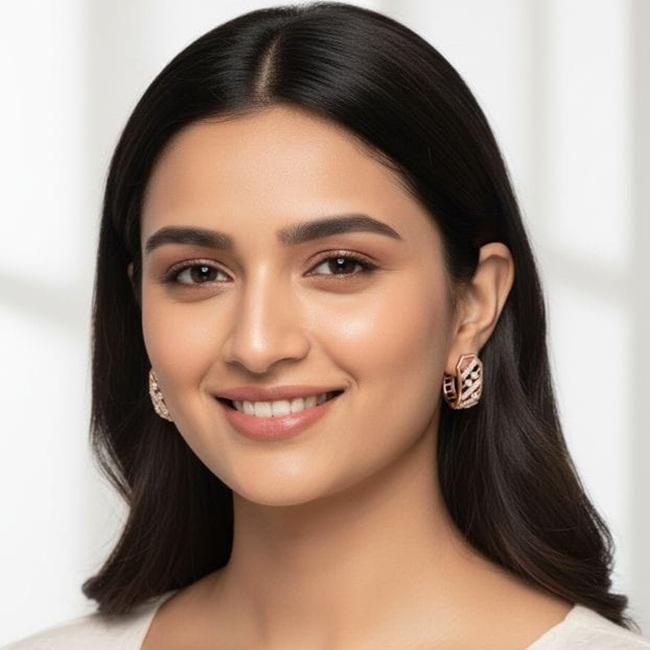 Rekhaa Vistaar Earrings are a modern Indian expression of structure and softness, designed for those who value understated luxury with depth. Crafted as standard in 10K rose gold, the pair carries an approximate gold weight of 2.485 grams, offering a warm, contemporary glow that resonates equally with Gen Z minimalism and Gen X elegance. The design is also available in 14K, 18K, and 22K gold, allowing flexibility in richness, tone, and weight preference.