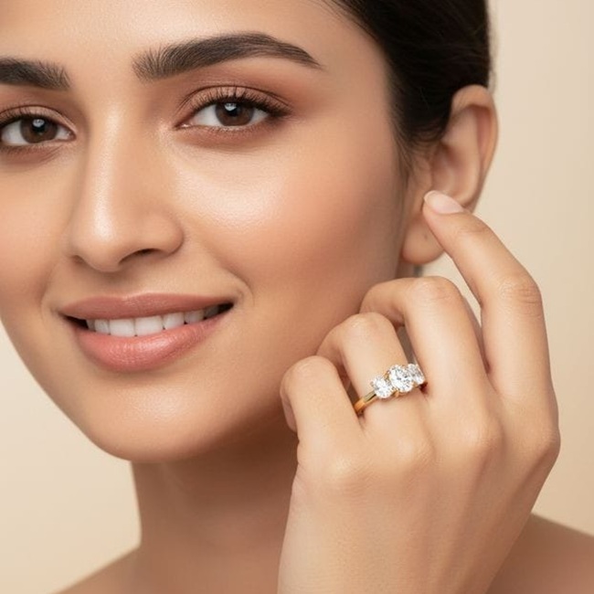 The Triarc Shift Ring is a bold expression of modern balance, designed for those who prefer their luxury confident, sculptural, and unapologetically refined. The design features a clean three-stone composition that feels powerful yet effortless, making it perfect for everyday wear while still carrying strong emotional presence. The softly contoured band flows seamlessly into the elevated setting, creating a look that feels contemporary, intentional, and quietly striking—ideal for Gen Z minimalists and Gen X lovers of timeless form alike.