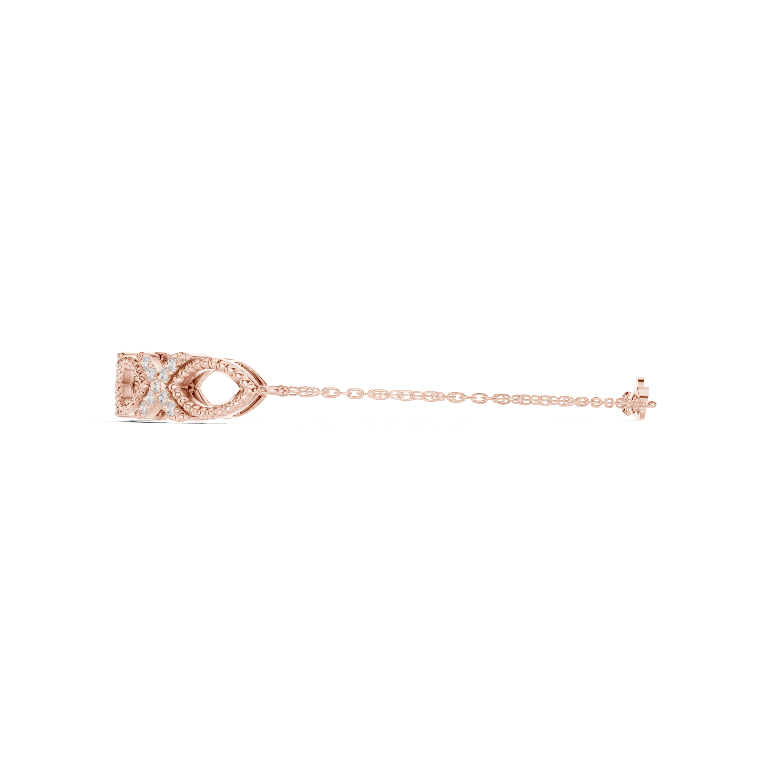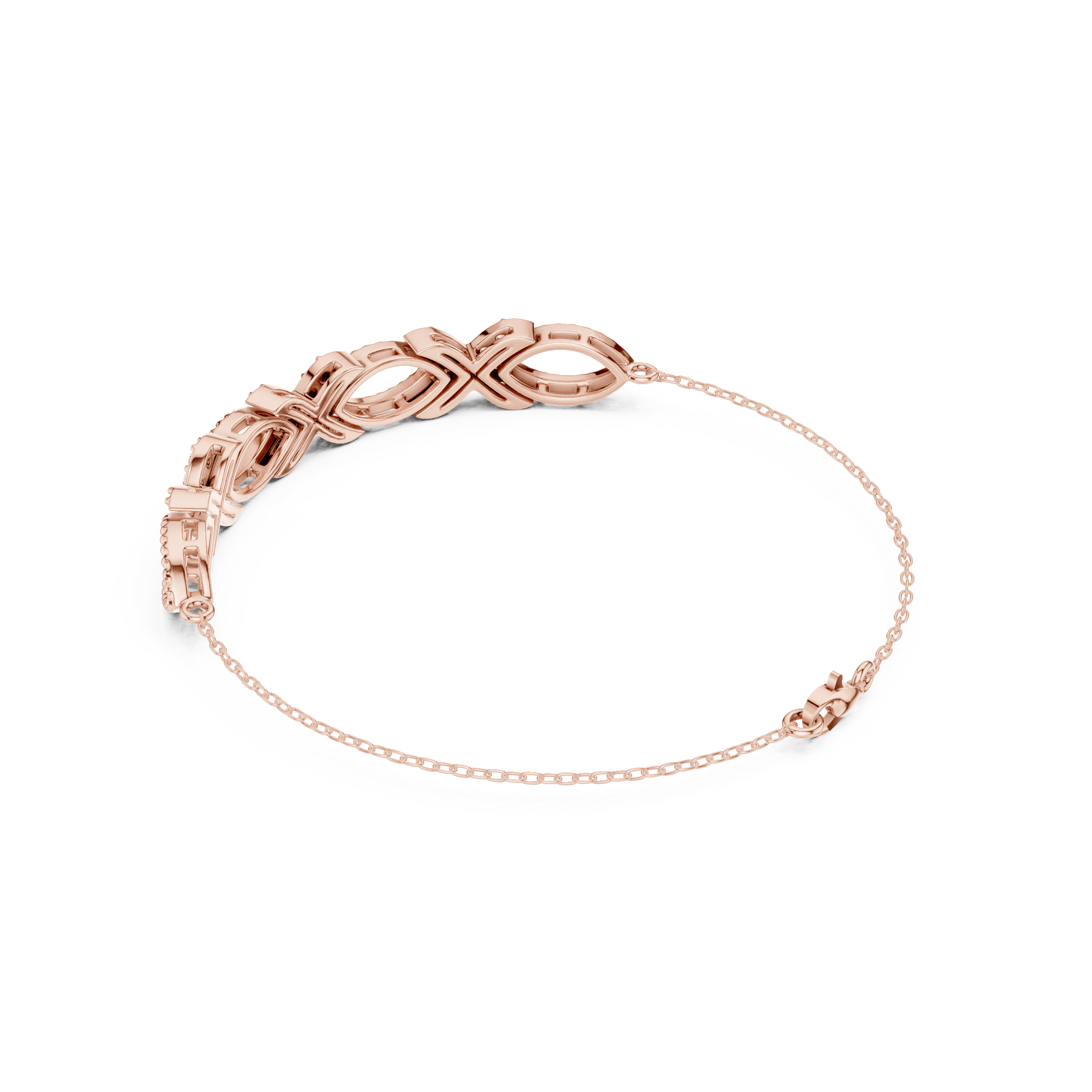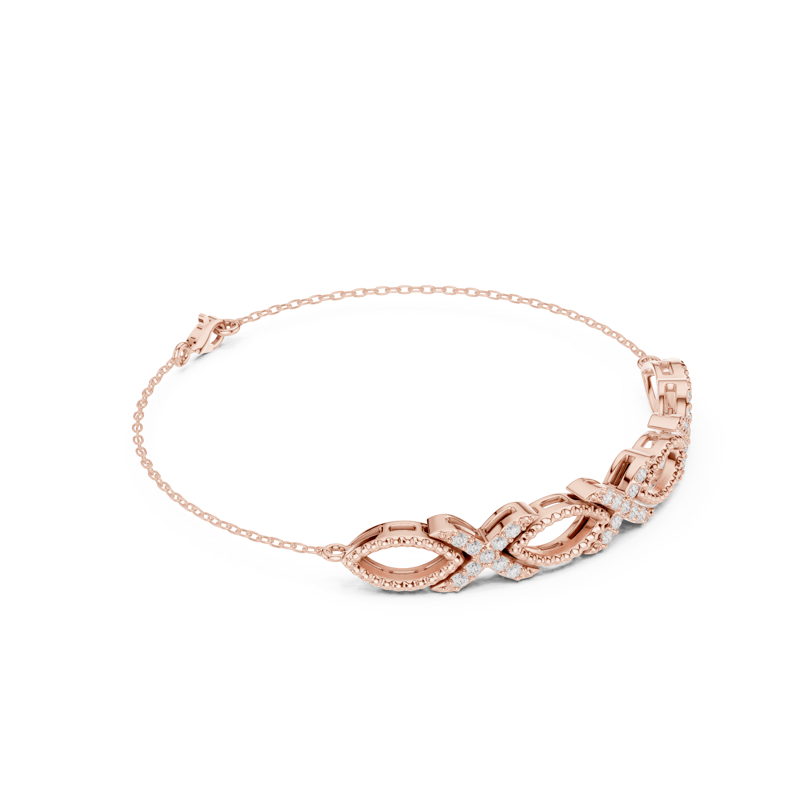refined interlinked infinity-loop bracelet segment engineered with alternating pavé-set and polished elliptical links for visual continuity and flexibility. Each primary infinity link measures approximately 10.25 mm in length, with an internal aperture height of 6.25 mm and an overall vertical profile reaching 7.20 mm. Transitional connector spacing is maintained at approximately 10.95 mm, ensuring uniform articulation across the bracelet length.