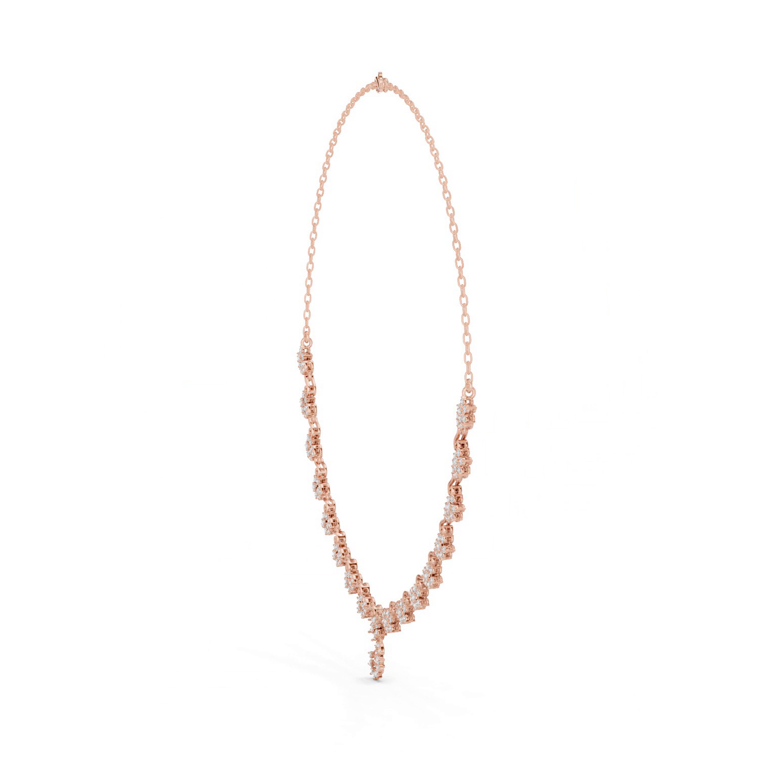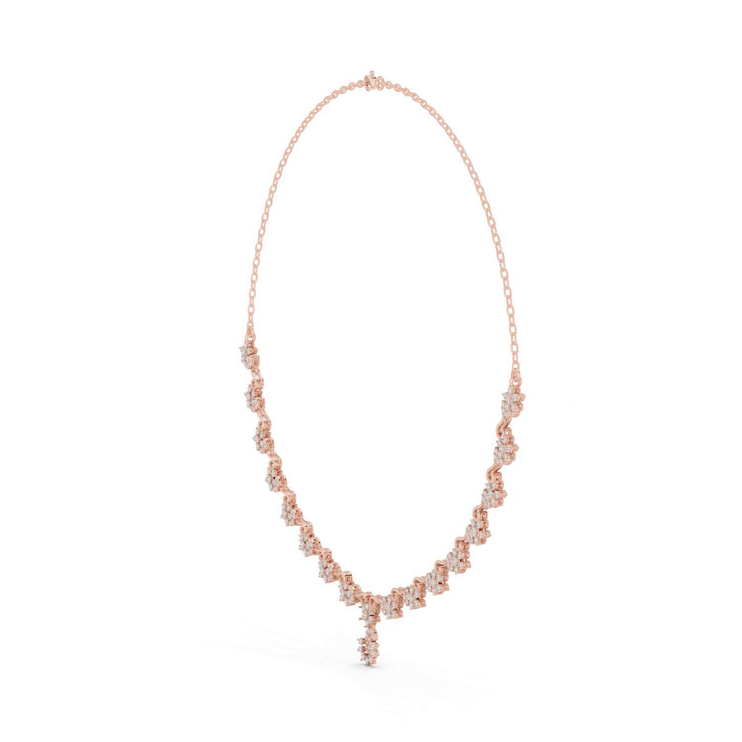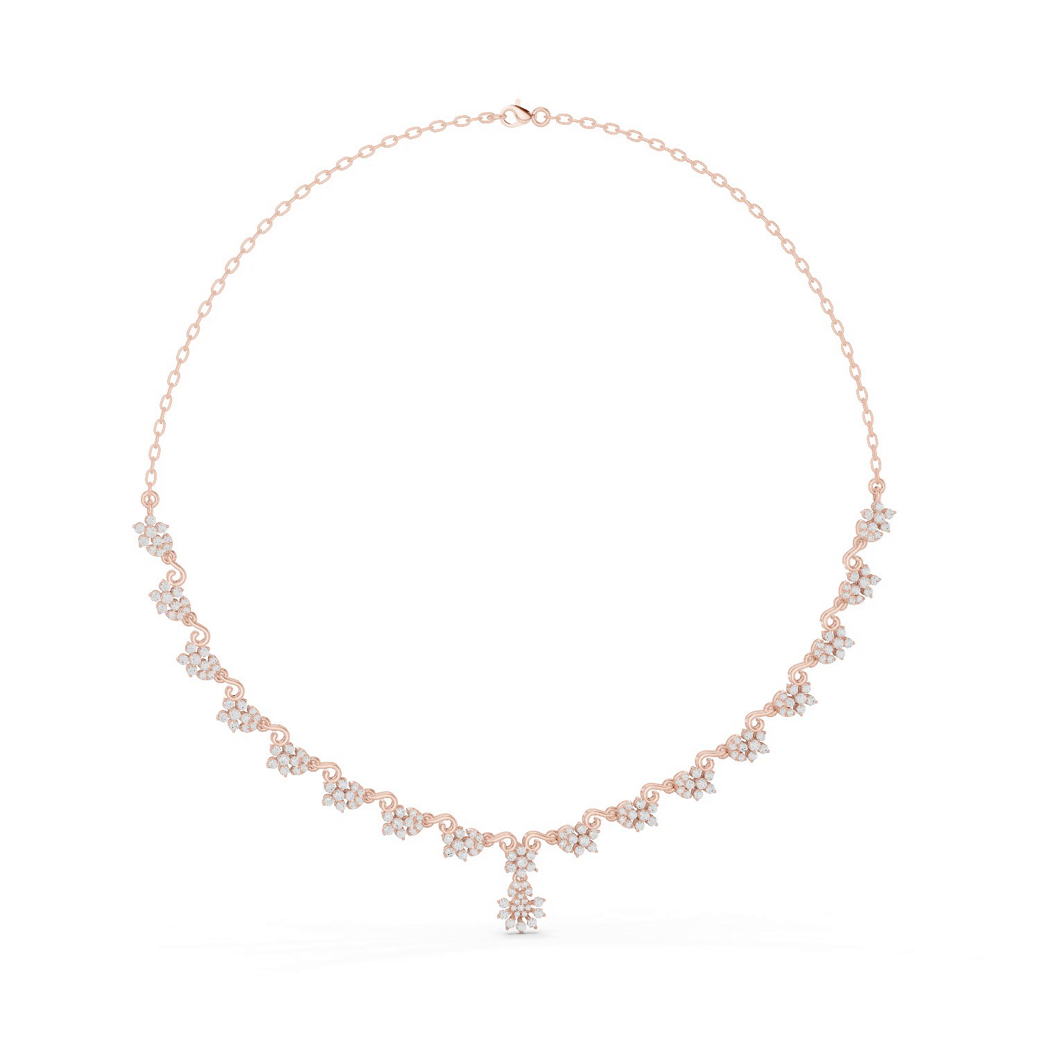 Designed for those who appreciate refined luxury without excess, the Sutraya Bloom Necklace is a fluid composition of precisely arranged laboratory grown diamonds, forming a soft floral rhythm along the neckline. Each motif flows seamlessly into the next, culminating in a delicate drop that adds movement without overwhelming the silhouette. Crafted to feel light, contemporary, and enduring, this piece transitions effortlessly from everyday elegance to elevated occasions—subtle enough for Gen Z minimalism, timeless enough for Gen X sophistication.